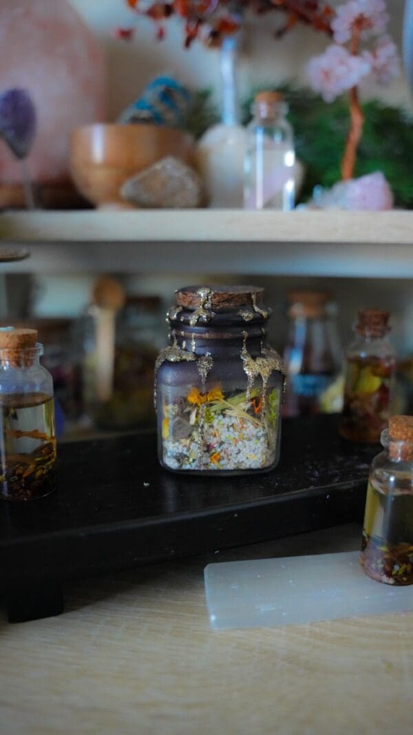 A third-party removal spell that encourages the other person to lose interest romantically or stop influencing your person, helps remove interfering friends or family, increases the success rate of a breakup or separation, and clears energetic blocks disrupting your connection. (requires the third party’s name or photo and must be paired with other jars if you want the person to return.)